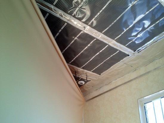 В-третьих, пленка может быть установлена в удобном для вас месте – в пол, стену, потолок. Она нагреет не только место своего расположения т.н. паразитным теплом, но и лучистым теплом предметы, расположенные напротив. Здесь важно помнить, что ее не стоит монтировать напротив окон и в местах, где впоследствии может возникнуть желание навбивать гвоздей. На больших свободных поверхностях пола можно устанавливать в пол, а при монтаже системы в спальне, учтите, что расположенная в потолке пленка нагреет поверхность кровати, а не ее низ, как в случае расположения в полу. А вариантов ее закрывания – масса (от натяжного потолка, до гипса и различного рода панелей).