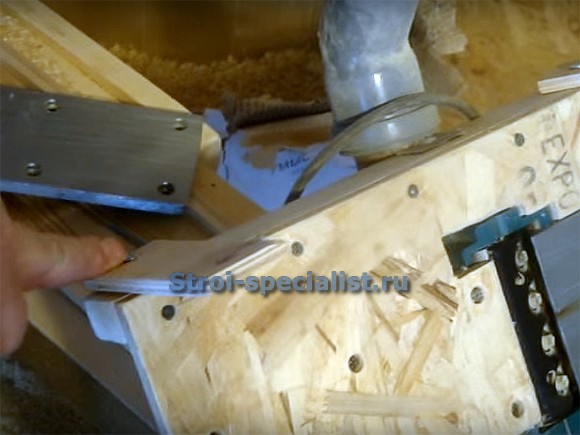 Мы так подробно здесь об этом рассказываем, чтобы была понятнее основная тема статьи – изготовление рейсмусового (рейсмусного) станка своими руками. Ведь главная его задача: прострогать погонажный деревянный материал с одинаковой толщиной. А несколько последовательных операций строгания на фуговальном станке с таким прижимным приспособлением, этот результат обеспечит.