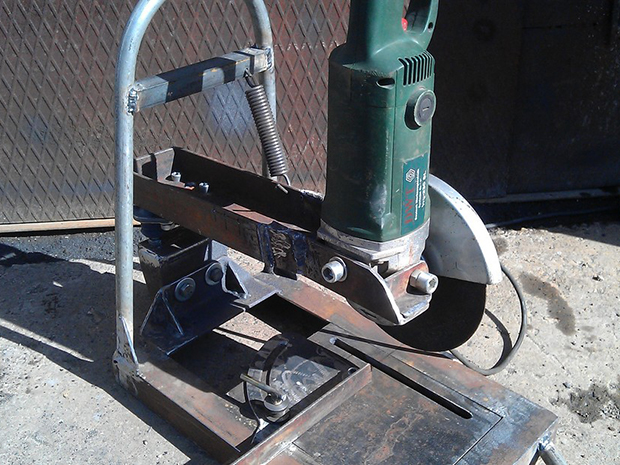 Так, как это показано в видеоролике, описывающем незамысловатую конструкцию стойки для УШМ из металла: