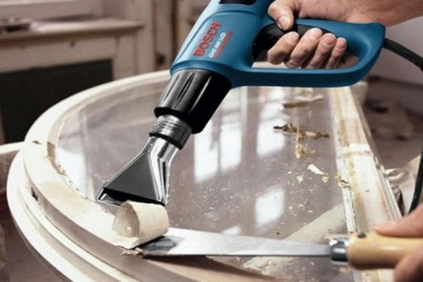 Строительным феном хорошо снимается старая краска, особенно, с древесины. Достаточно температуры 500° C. Прогрев производится небольшими участками — вздувшаяся краска счищается скребком.