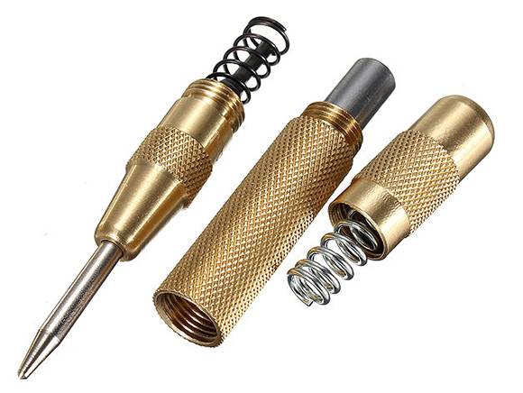 - Механический пружинный кернер позволяет производить кернение одной рукой, важно только установить его строго перпендикулярно и не изменить это положение при нажиме. Среди его преимуществ также значится одинаковая глубина полученных кернов. А возможность регулировки усилия делает возможной работу даже с хрупкими или мягкими материалами без боязни их повредить.