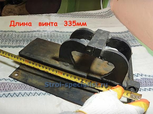 Гайка от винтовой пары приваривается к пластине основания заподлицо со 120-м швеллером.