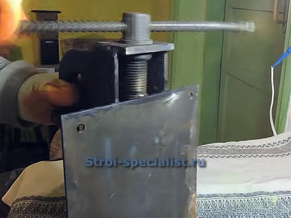 Особенно хорошо это заметно по фотографии, на которой в качестве винтовой пары используются детали сантехнической трубной задвижки с маховиком.