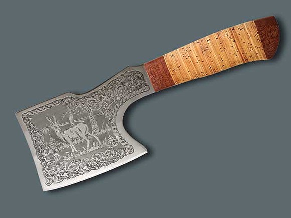 «Тупое» лезвие раскалывает кость, а бритвенная форма топорища способствует хорошему проникновению в плоть. Да и вес – от 3 до 3,5 кг – тому подспорье. Кстати, то же было важно и для боевых секир.