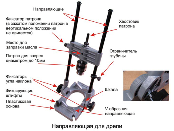 C помощью обычной ручной дрели почти невозможно вручную просверлить строго перпендикулярное отверстие в толстом бруске, выполнить ряд точных параллельных сверлений. Покупать же для этой цели даже недорогой сверлильный станок, крайне расточительно, если подобная работа носит эпизодический характер.