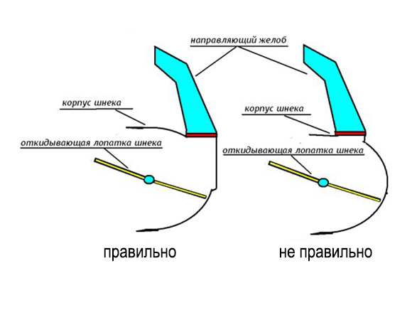 Обороты шнека должны находиться в пределах 500 – 800 об/мин, а крыльчатки 1000 – 1500 об/мин, чтобы она успевала выбрасывать поданный шнеком снег. А еще диаметр и размеры ее лопаток должны быть согласованы с диаметром и шириной шнека. Этот расчет достаточно сложен, поэтому, если вы решите применить именно такую схему своего снегоуборщика, то лучше возьмите за основу параметры одного из промышленно выпускаемых устройств, где уже все просчитано и скопируйте ее.