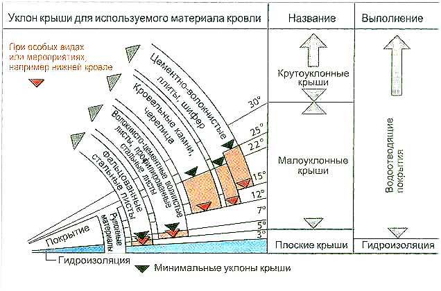 - уменьшение уклона увеличивает опасность отрыва любого покрытия ветром.
