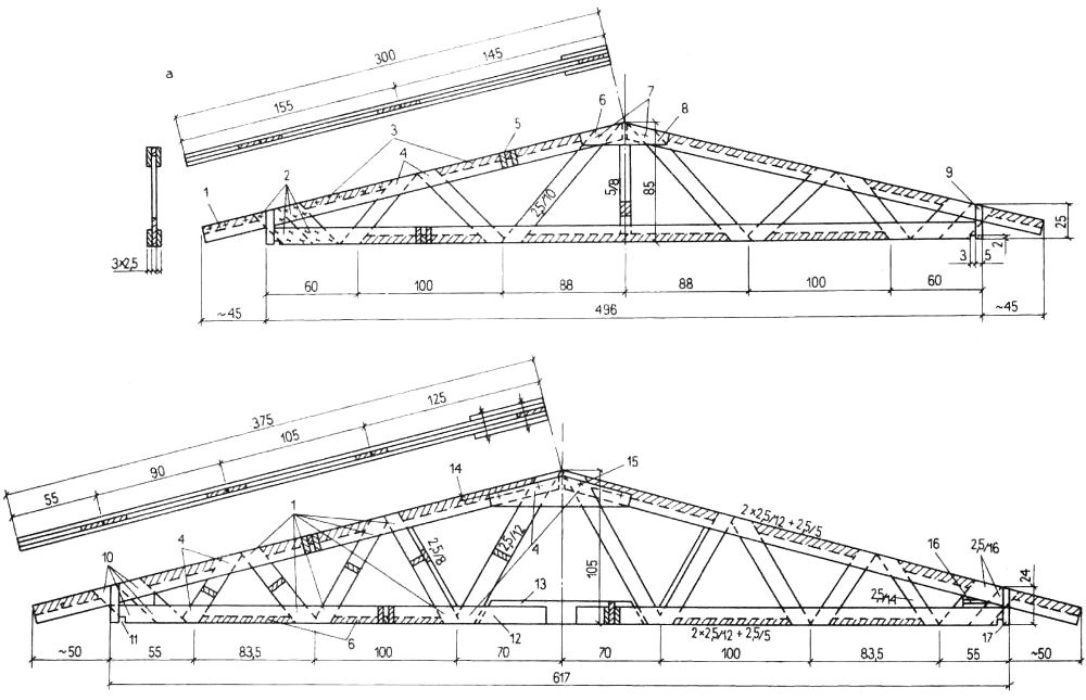 Для крыш со скатом около 8 о – 10 о может быть применена такая схема: