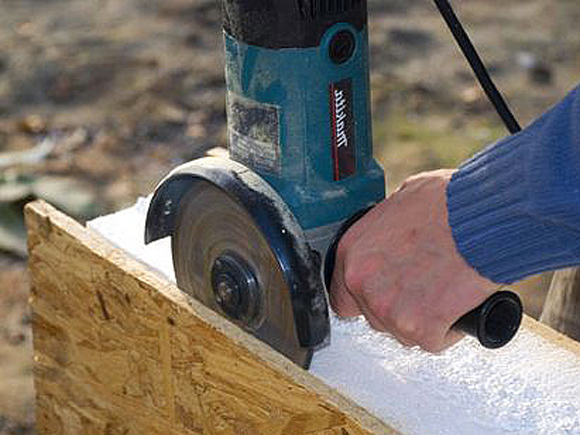 Для вырезания пенополистирола нам понадобится та же болгарка, либо любой другой инструмент, способный сделать прорезь между ОСП и полистирольным блоком для нормальной работы инструмента с нихромовой проволокой для резки пенопласта.