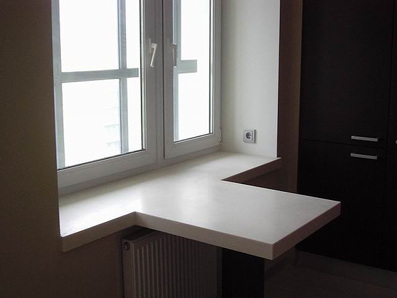 Зачастую такие подоконники ставят в жилых помещениях. Но на кухнях могут использовать для создания комбинированных столешниц (подоконник — стол, подоконник — рабочая поверхность, подоконник – тумбочка и прочее).