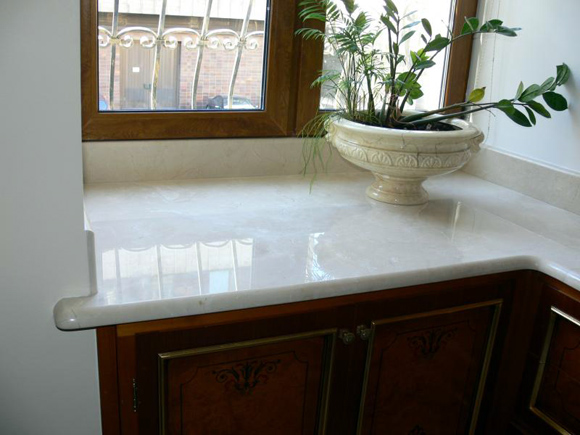 Вариант исполнения подоконника – столешница на кухне, чаще всего изготавливается именно из искусственного камня. При этом можно получить наиболее интересное сочетание цена – качество.