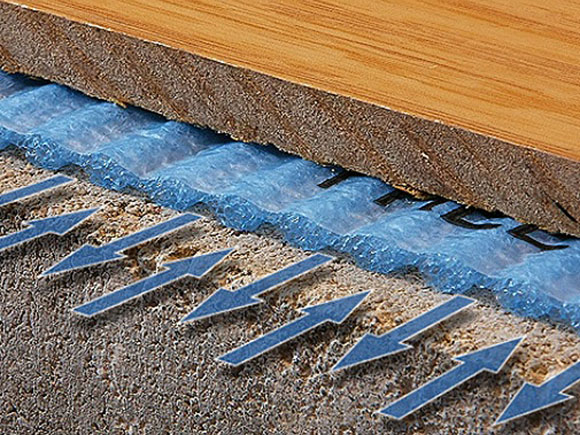 Туплекс – вариант комбинированного использования материалов. Пенополистирольные шарики в нем находятся между двумя полиэтиленовыми пленками. Зазор, образовавшийся при этом, хорошо вентилирует пространство под ламинатом. Ее толщина – 3 мм.