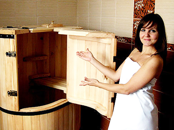Для еще более критичных случаев существуют мини-сауны, именуемые фитобочками. Сделать такую самостоятельно вовсе не трудно. Для их изготовления применяется древесина кедра, хотя можно использовать уже перечисленную древесину, а нагревателем у них служит внешний парогенератор.
