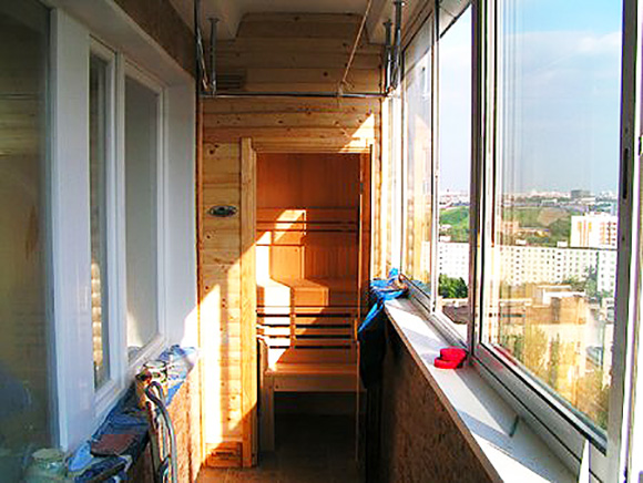 В условиях балкона или кладовки вряд ли удастся достичь этих пожеланий, но если ширина полка не может быть хотя бы 1200 мм – откажитесь от такого выбора места для мини сауны.