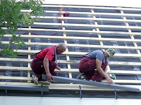 Ветровая и карнизная планка, в свою очередь, защищают эти доски от затекания влаги под них и отвод воды на их поверхности, чем радикально увеличивают срок службы. Иногда вместе с ветровой и карнизной ставят также так называемую лобовую планку, чтобы доска была полностью защищена металлом.
