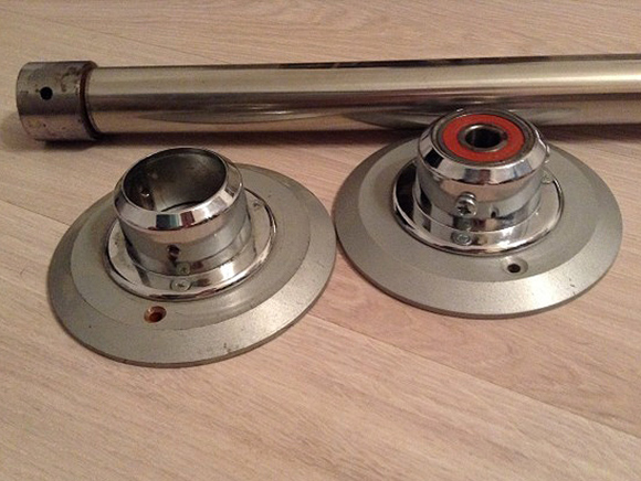 Современный пилон делается из толстостенной трубы из полированной нержавеющей стали, имеет верхнюю и нижнюю опоры и механизм раздвижения для фиксации трубы в опорах.