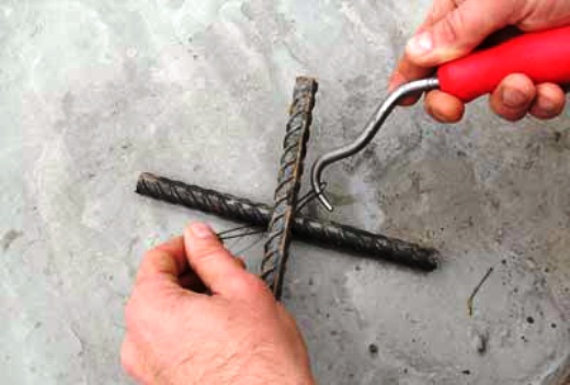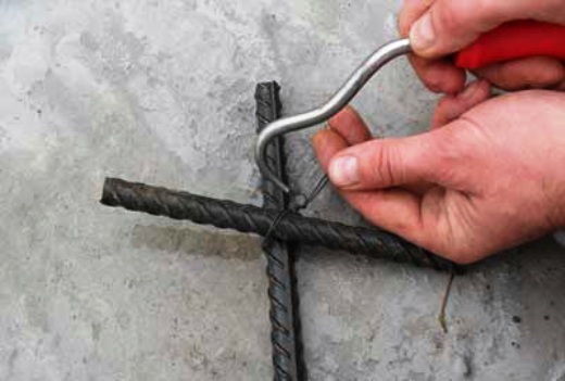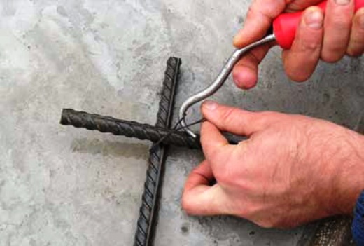 Для увязки арматуры крючками и другими ручными приспособлениями проволока нарезается длиной около 20 сантиметров и складывается вдвое. Далее происходит закручивание, которое более подробно описано ниже.